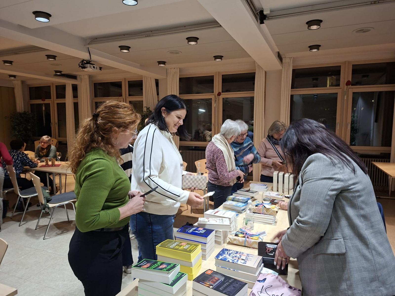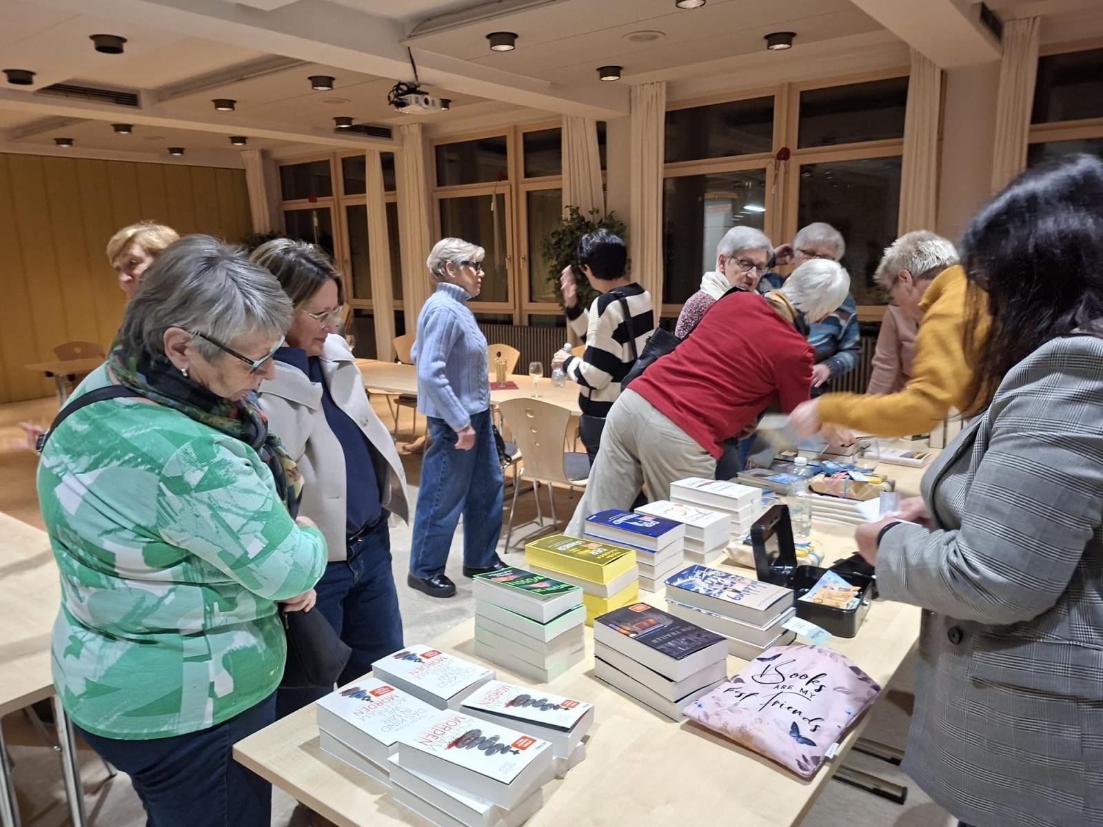 Im Anschluss an die Bücherpräsentation gab es die Möglichkeit, diese zu erwerben. Viele der Frauen deckten sich mit neuem Lesefutter ein. Es war für alle ein sehr gelungener Abend mit verschiedenen Leseanregungen und Büchertipps der Buchhändler. Auch die Frauen untereinander tauschten sich ausgiebig über ihre Büchervorlieben aus.