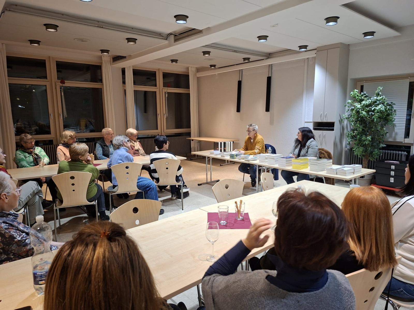 Rund 25 lesebegeisterte Frauen kamen am Freitag, den 16. Januar 2026 zu einem gemütlichen Bücherabend ins Pfarrheim, um bei Wein- und Apfelschorle, Tee und Knabbereien neue Leseanregungen zu bekommen.