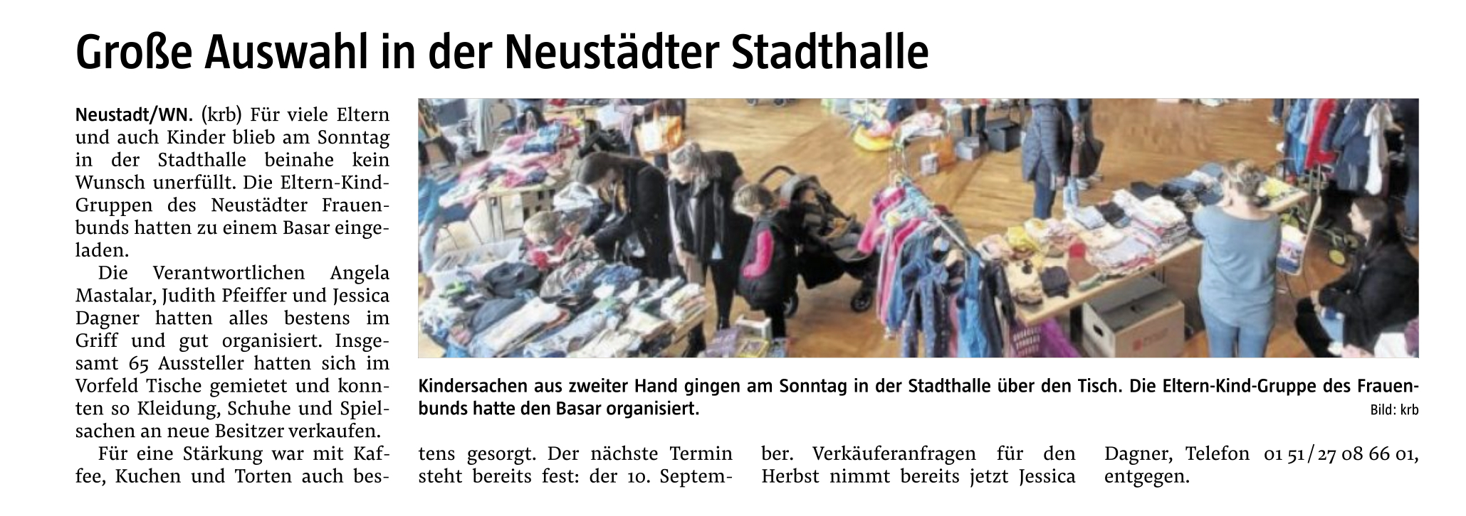 Wegen der großen Nachfrage wurde dieses Mal der Basar vom Pfarrheim in die Stadthalle verlegt. Wegen des großes Erfolges ist wieder ein Basar im Herbst geplant.