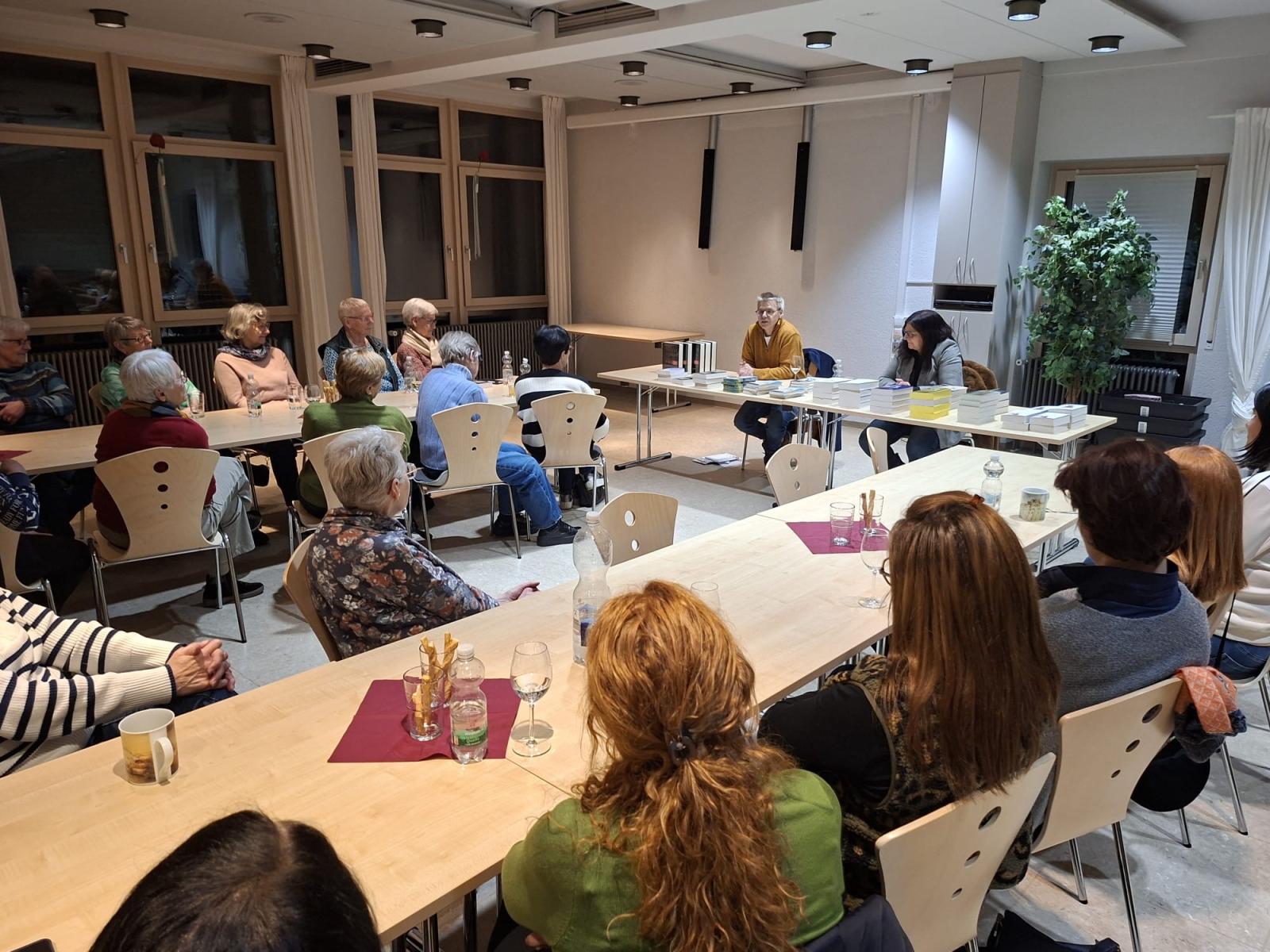 Rund 25 lesebegeisterte Frauen kamen am Freitag, den 16. Januar 2026 zu einem gemütlichen Bücherabend ins Pfarrheim, um bei Wein- und Apfelschorle, Tee und Knabbereien neue Leseanregungen zu bekommen.